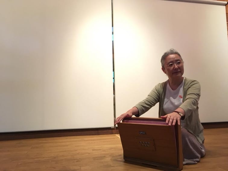 高野山でのワークショップですみれさんがシュルティーボックスを使って歌い始め、一緒に声を出していると、私の凝り固まった枠が自然に広がる感じがしたのです。